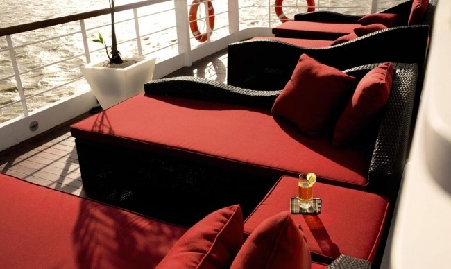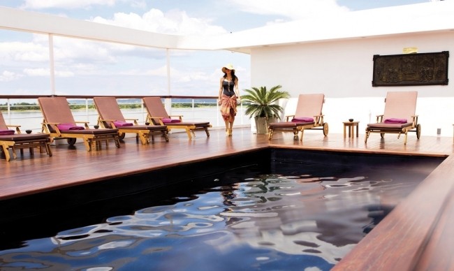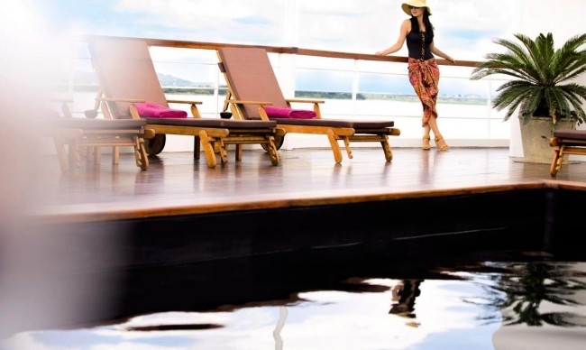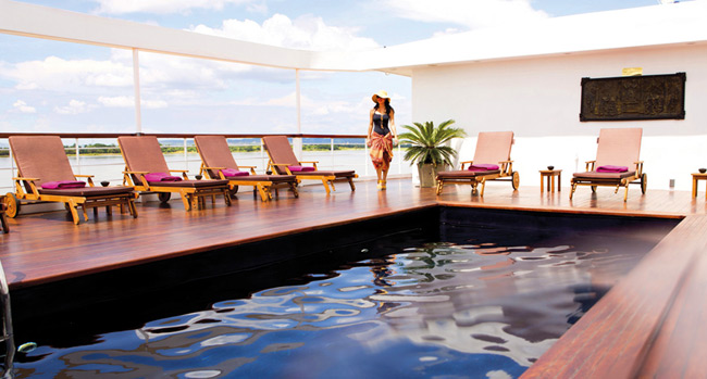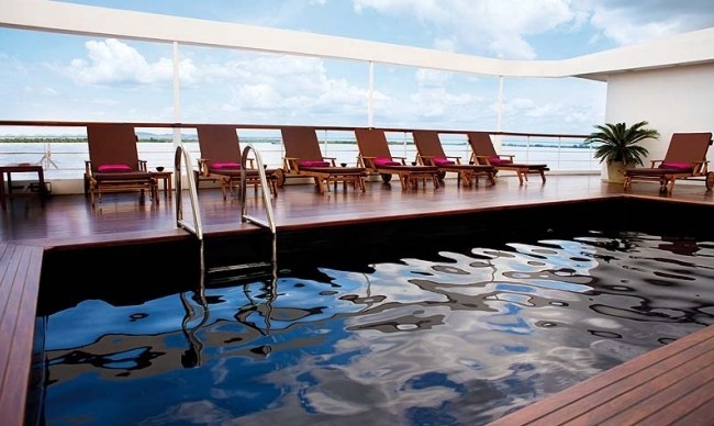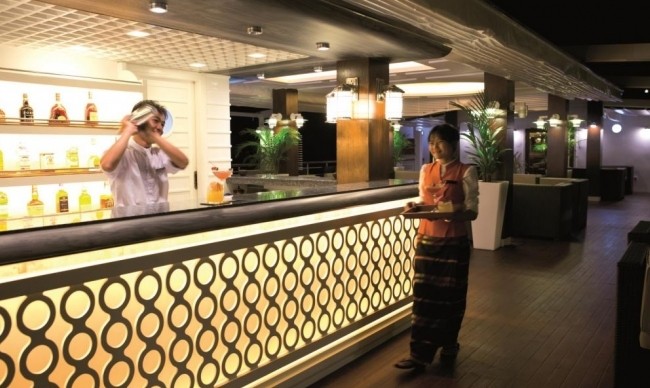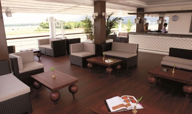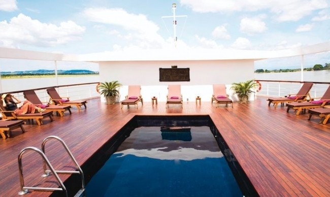 Being the heart of the ship, this Observation Deck includes an open sun-deck area, lounge bar and 20ft swimming pool+ The decor throughout is comtemporary Burmese style with locally commissioned artwork, traditional furniture and