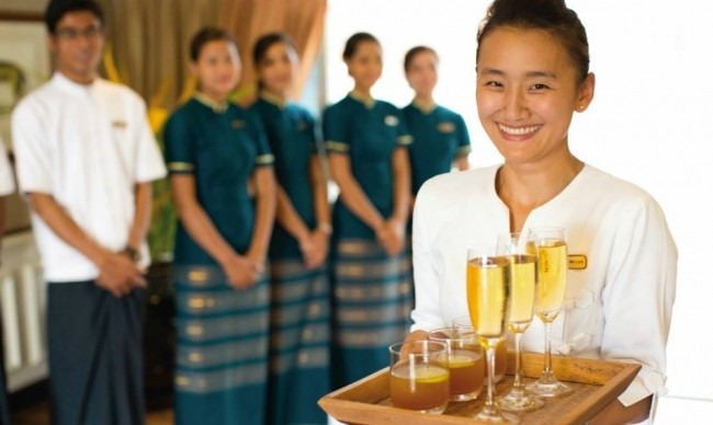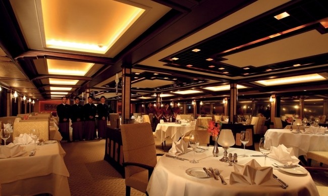 The acclaimed on-board menu showcases the finest gourmet Eastern and Western delicacies, all served with Burmese courtesy and charm, including Burmese, Thai, Indonesian, Indian and European specialities. Morning tea or coffee served in your cabin on request; Buffet breakfast served in the Restaurant daily; Extensive buffet lunch served daily; Table d'hôte dinner with both eastern and western options; Complimentary soft drinks, mineral water, local beer and house wine are served with lunch and dinner; Complimentary pre-dinner aperitif served in the Bar each day; Cocktail parties with complimentary drinks and canapés; Gala Dinner on last night with specially designed menu.
