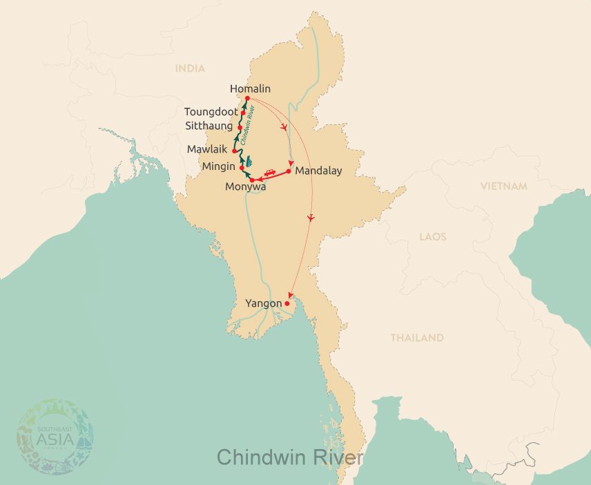 • Travel to the furthest navigable point on the Chindwin River to explore the unique sights and people's life