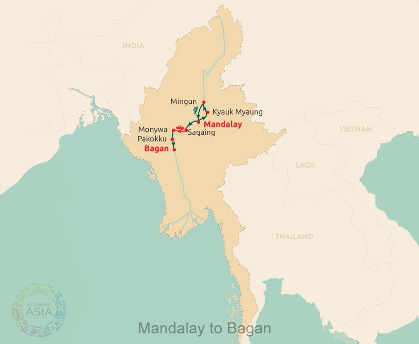 • Travel up the cities of Mandalay and Bagan in Laos through Mingun and Sagaing